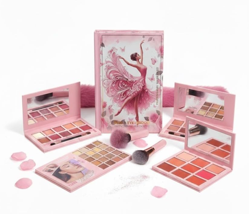 - مجموعة مكياج احترافية الكل في واحد: باليت مكياج الوجه بتصميم كتاب مكون من 5 صفحات، تعد حل تجميلي كامل يتضمن ايشادو وهايلايتر وبودرة خدود وكونتور وبرونزر ولون للحواجب، جميعها مرتبة بعناية في باليت واحدة أنيقة وقابلة للطي لتوفير أقصى درجات الراحة والكفاءة.