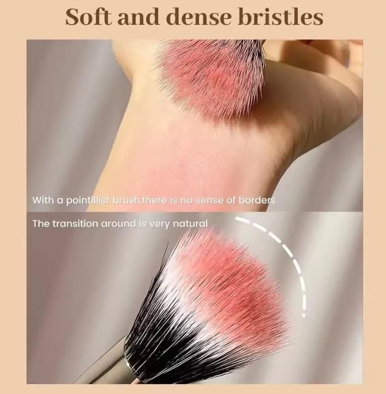 - أ. فرشاة المكياج: فرش كريم الأساس ناعمة وكثيفة وحريرية، مما يوفر لك شعورًا مريحًا وسلسًا؛ يمكن استخدام الفرشاة لوضع بودرة الأساس وأحمر الخدود وكريم الأساس السائل وكريم الأساس الكريمي، فهي جيدة لجعل كريم الأساس الخاص بك يبدو لطيفًا ورائعًا.