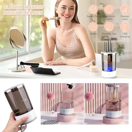 - 【منظف فرش المكياج الكهربائي الجديد】--يستخدم منظف فرش المكياج ذو التصميم الجديد لعام 2024 أحدث التقنيات لتنظيف فرش المكياج بشكل كامل ولطف. المحرك القوي واللطيف يدور وينظف كل شعيرات، ويزيل بقايا المكياج والزيوت والشوائب