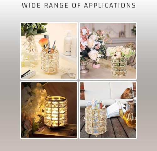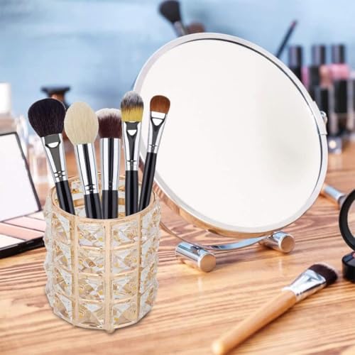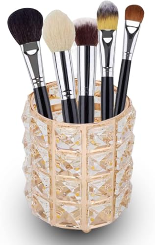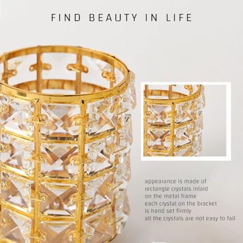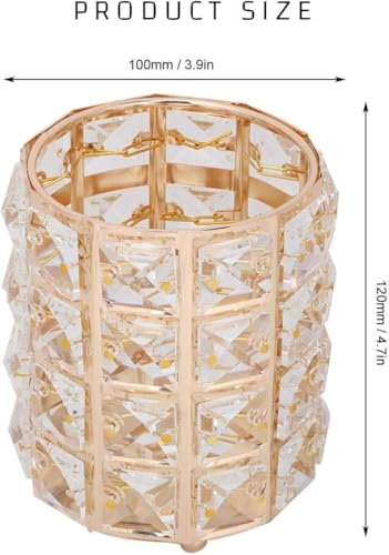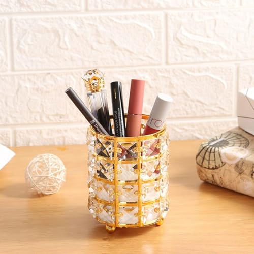 Generic - حامل فرش المكياج - كوب منظم مكياج كريستالي، صندوق تخزين مستحضرات تجميل معدني أنيق، حامل أقلام متعدد الوظائف، وعاء شموع لتزيين المكتب، (ذهبي)