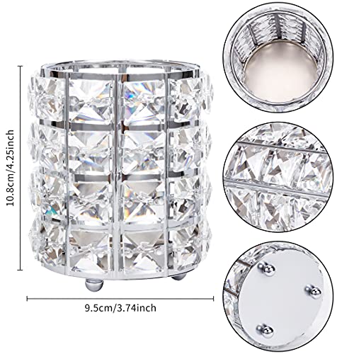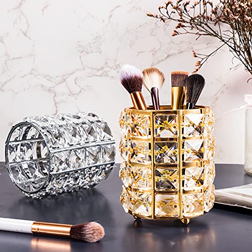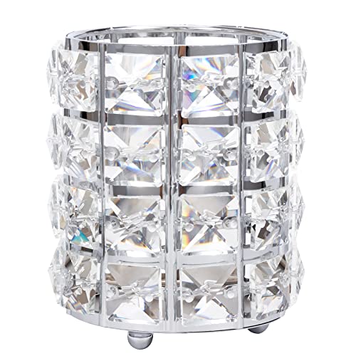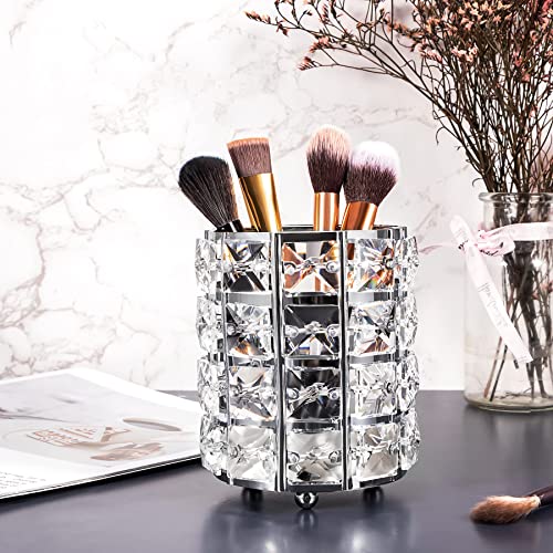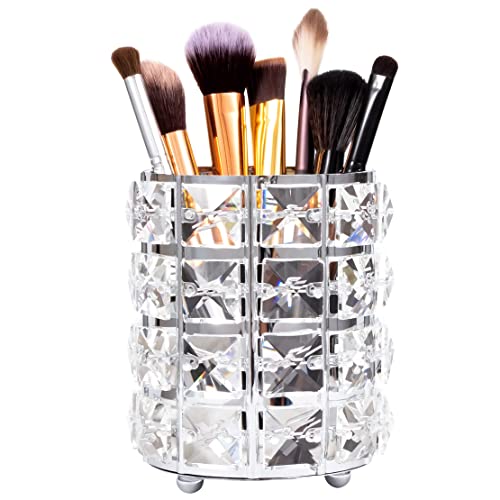Pechor - منظم وحامل فرش المكياج حامل مستحضرات تجميل للمنضدة مصنوع يدويا بتصميم كريستالي ومخصص صندوق فاخر لتخزين واقلام الرصاص فضي
