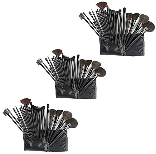 غير معروف - مجموعة فرش مكياج من 24 قطعة بلون اسود، مجموعة من 3