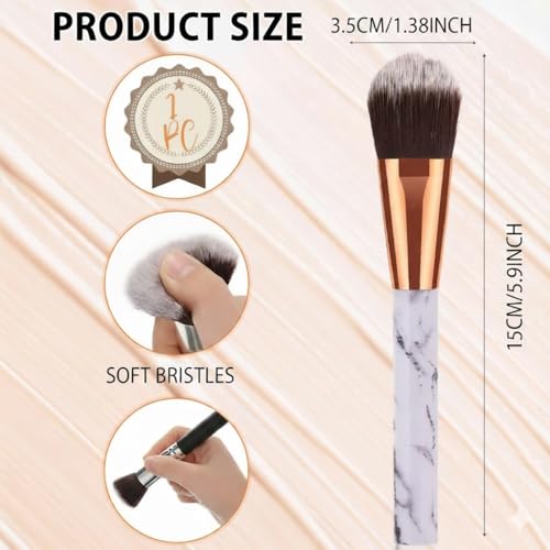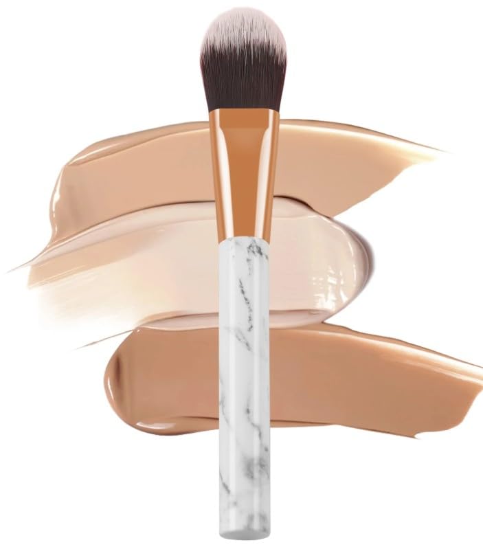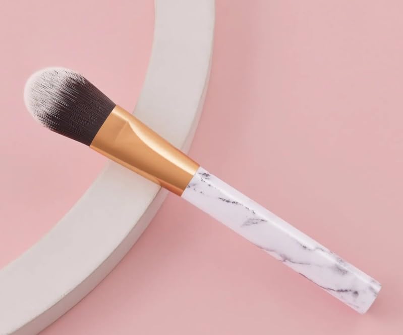 Generic - فرشاة تجميل ناعمة وآمنة ذات عمر استخدام مديد، فرشاة مكياج ذات طابع رخامي محمولة بأنبوب من الألومنيوم لوضع كريم الأساس للسيدات - 1 × قطعة