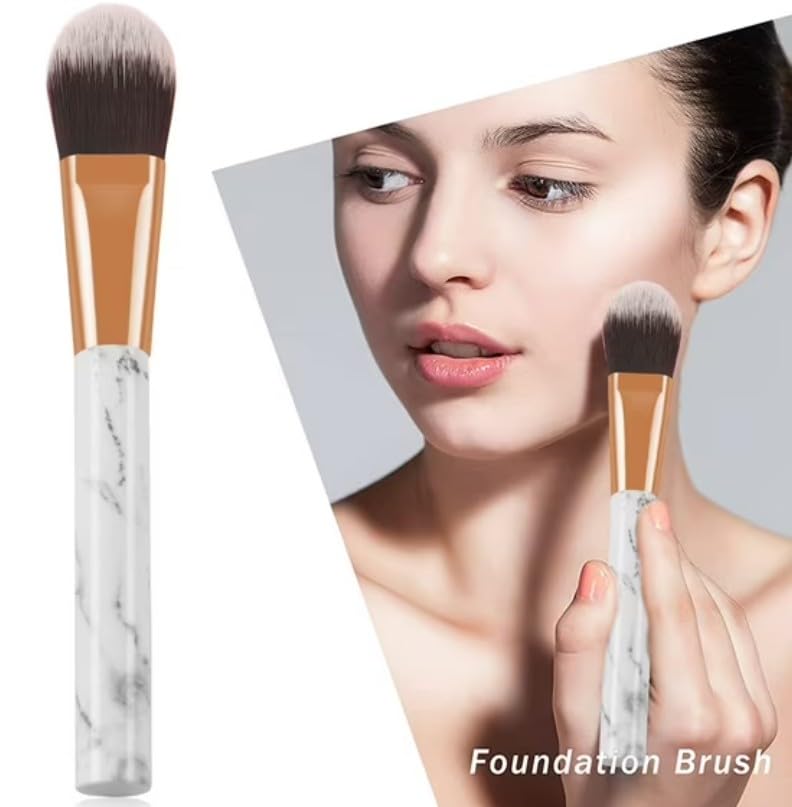 - أ. فرشاة المكياج: فرش كريم الأساس ناعمة وكثيفة وحريرية، مما يوفر لك شعورًا مريحًا وسلسًا، يمكن استخدام الفرشاة لوضع بودرة الأساس وأحمر الخدود وكريم الأساس السائل وكريم الأساس الكريمي، فهي جيدة لجعل كريم الأساس الخاص بك يبدو لطيفًا ورائعًا.