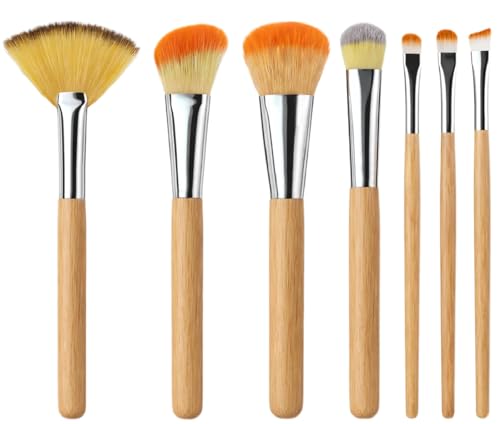 Generic - مجموعة فرش مكياج احترافية بشعيرات ناعمة لكريم الأساس والايشادو وفرش للمزج والتحديد للنساء والبنات ومعها شنطة، أدوات تجميل بتصميم طبيعي مكونة من 7 قطع