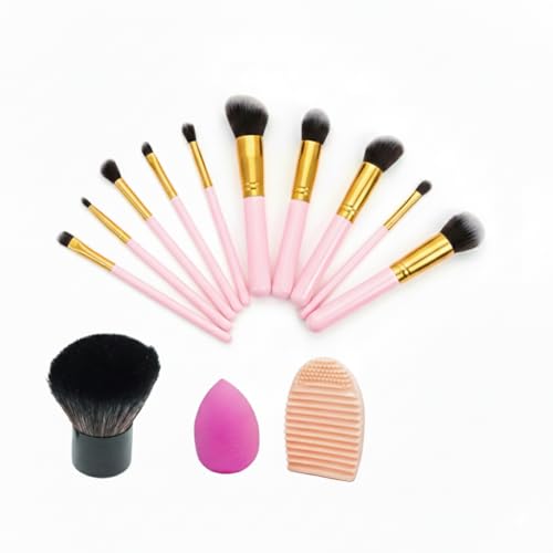 Generic - مجموعة فرش مكياج مع اسفنجة تجميل واداة تنظيف، مجموعة احترافية مكونة من 10 قطع بلون ذهبي وردي
