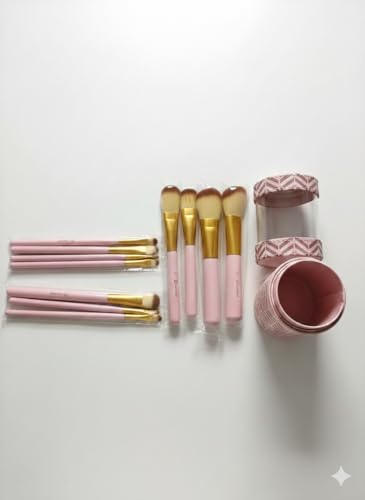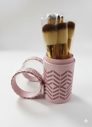 Generic - طقم فرش مكياج مع حافظة أسطوانية، 10 قطع، لون وردي وذهبي، شعيرات ناعمة