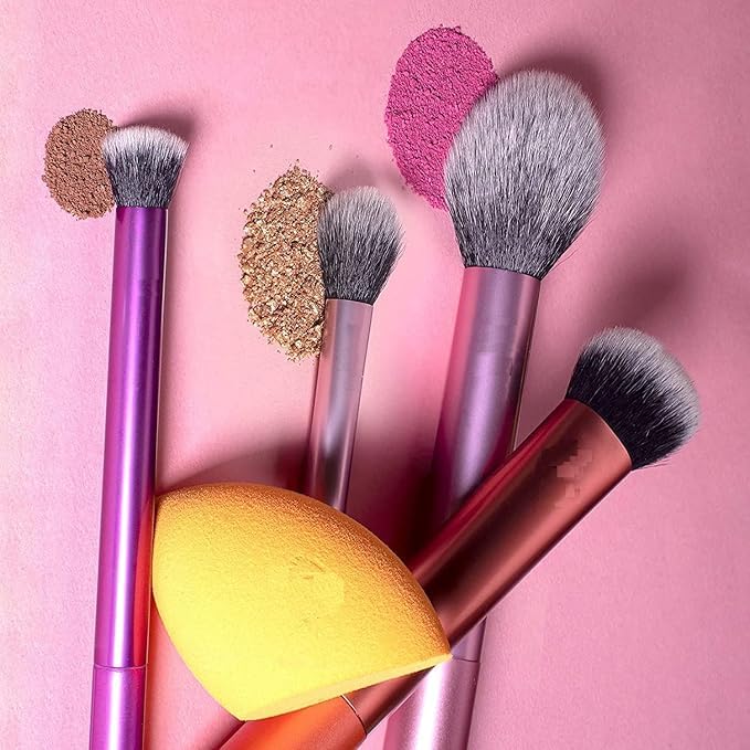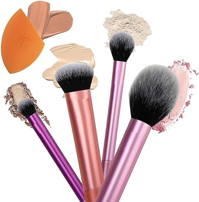 Generic - مجموعة فرش مكياج مع اسفنجة مزج للسفر لظلال العيون وكريم الاساس واحمر الخدود والكونسيلر، مجموعة من 5 قطع