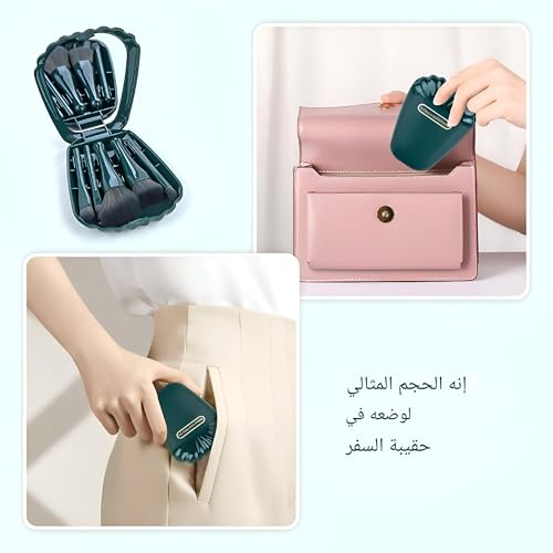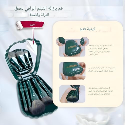 Generic - فرش المكياج - اكتشف فرش المكياج 5 في 1 المثالية للسفر بتصميم صدفة فريد وألياف ناعمة للغاية، مما يتيح لك تطبيق مكياج خالي من العيوب، مع مرآة مدمجة لللمسات النهائية بسرعة.