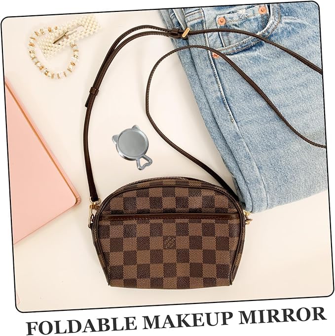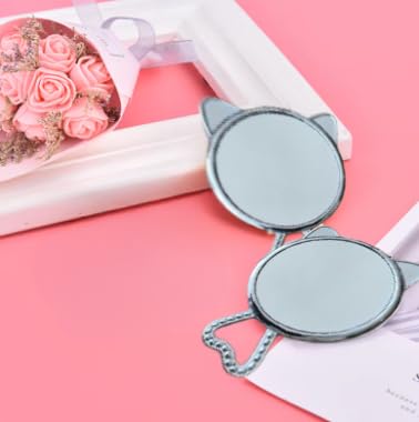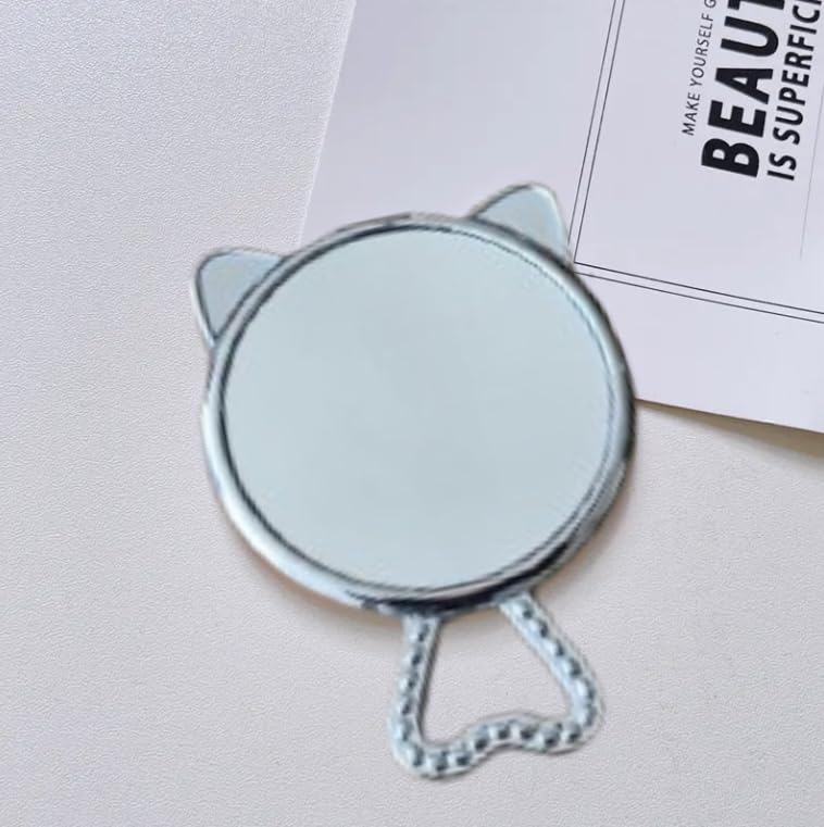 Generic - مرايا فاخرة بمقبض للمكياج - مرآة صغيرة بتصميم قطة مائية لامعة - مرآة مكياج صغيرة محمولة للجيب للشنط والسفر - مثالية للأطفال والنساء والفتيات