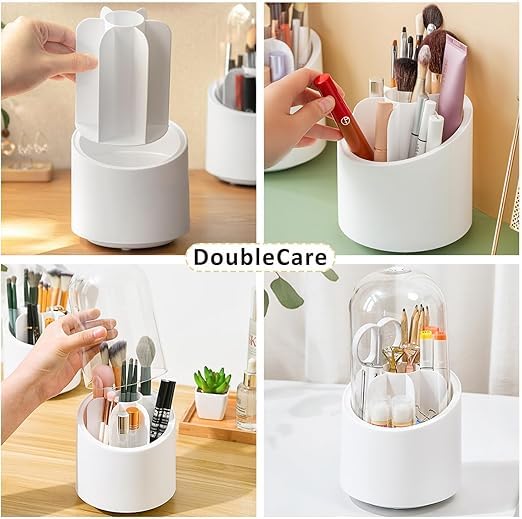 Generic - منظم حامل مكياج مع غطاء دوار مقاوم للغبار، غطاء اكريليك شفاف، كوب ديكوري للمكتب وسطح الطاولة