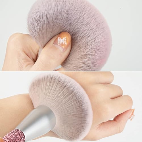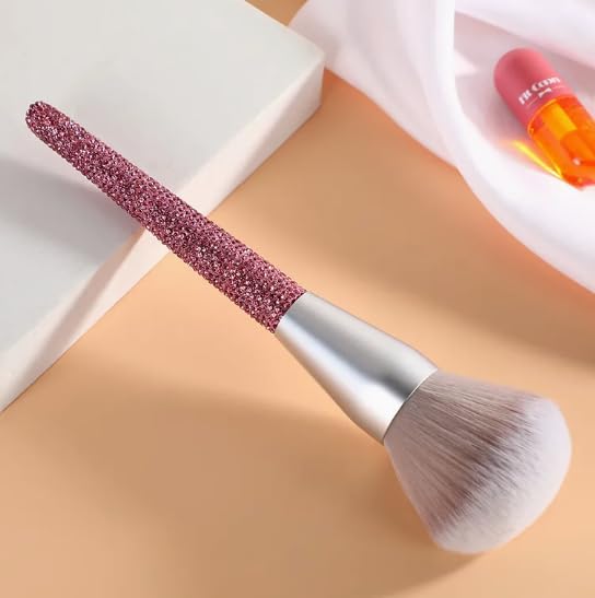 Generic - فرشاة مكياج كبيرة لوضع البودرة وكريم الأساس وأحمر الخدود والبرونزر والكونتور ومزج مكياج الوجه الاحترافي بشعيرات ناعمة سميكة وكثيفة - لون وردي غامق لامع