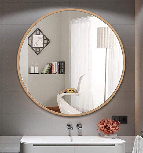 WANGXIAOLIN - مراية مكياج دائرية تثبت على الحائط مزودة بإطار معدني للحمام، مراية مكياج كبيرة بتصميم ريترو، مراية للحلاقة ووضع المكياج والتزين (المقاس: مراية مكياج ذهبية مقاس 60 سم)