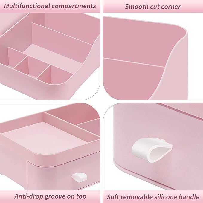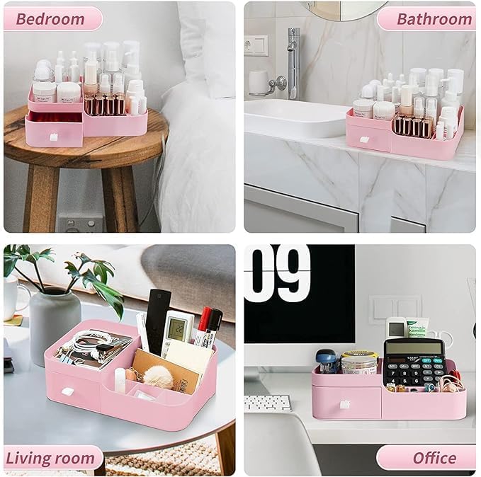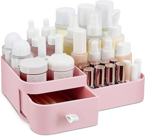 Generic - صندوق منظم مستحضرات التجميل بتصميم عصري، باللون الوردي، مدمج، مثالي للعناية بالبشرة في الحمام وغرفة النوم