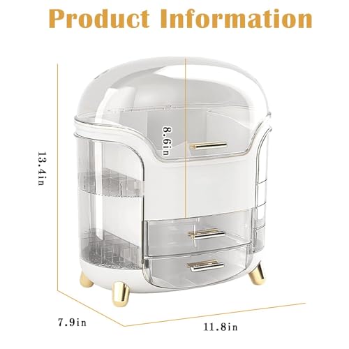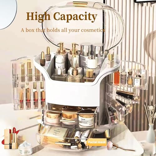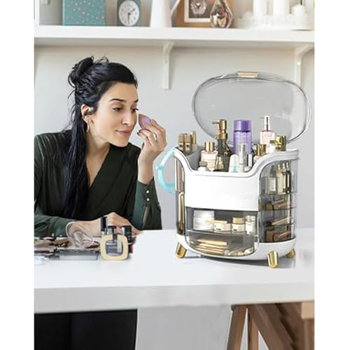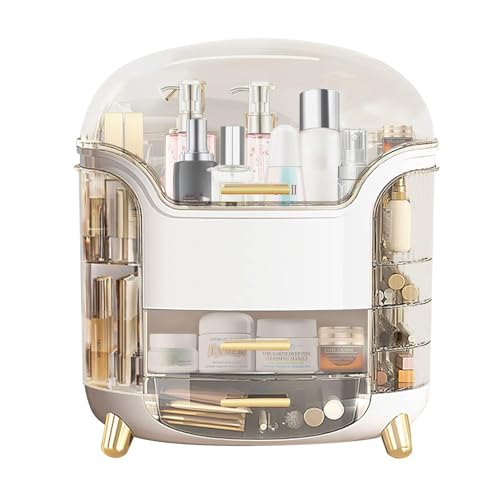 Pecbase - صندوق لتنظيم وتخزين المكياج لمستحضرات التجميل لسطح الطاولة بغطاء وأدراج، صندوق منظم مستحضرات التجميل والعناية بالبشرة بغطاء مقاوم للماء والغبار لغرفة النوم، أبيض