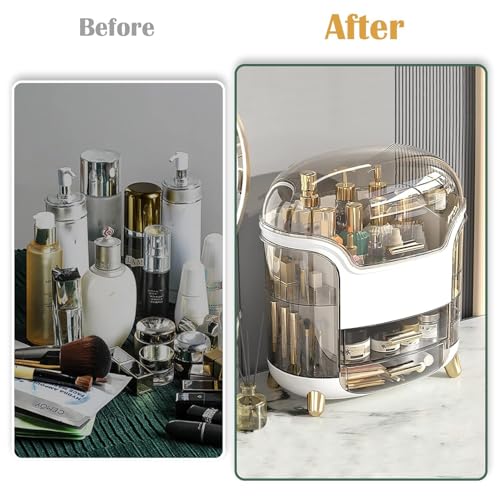 - 【مقاوم للغبار】 يمكنك وضع المنظم في الحمام أو غرفة النوم، لحماية مستحضرات التجميل من الغبار والرطوبة. هذا المنظم مزود بغطاء شفاف وأدراج مقسّمة بعناية، تتيح لك تخزين أحمر الشفاه وفرش المكياج وأقلام الحواجب وكريم الأساس وأدوات التجميل والسلاسل والخواتم.