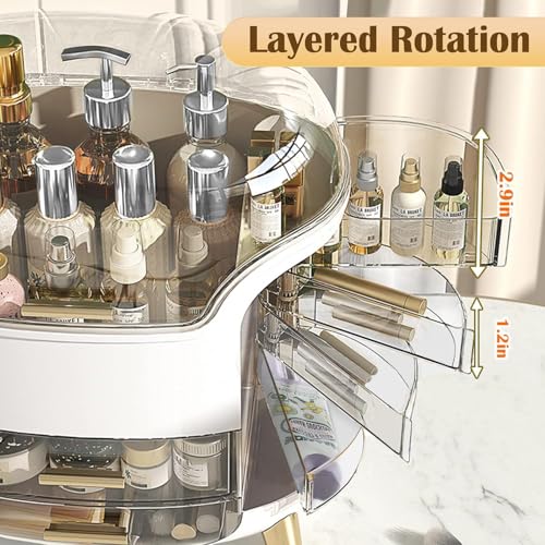 - 【سعة تخزين كبيرة】 يحتوي على 9 مناطق تخزين تشمل درجين، طبقتين لتخزين أحمر الشفاه، 4 أماكن تخزين دوارة، وصندوق مكياج كبير لتلبية حاجتك لتخزين منتجات بأحجام مختلفة. الغطاء العلوي الطويل يسهل تخزين الزجاجات الكبيرة (22 سم). يمكنك تخزين جميع مستحضرات العناية بالبشرة ومستحضرات التجميل اليومية بكل سهولة وبدون أي مشكلة.