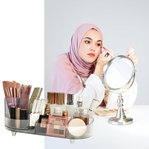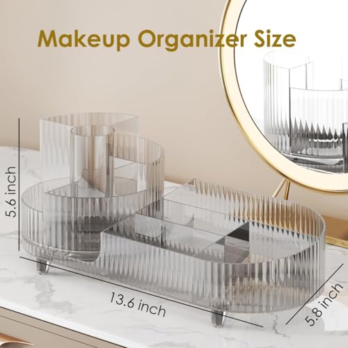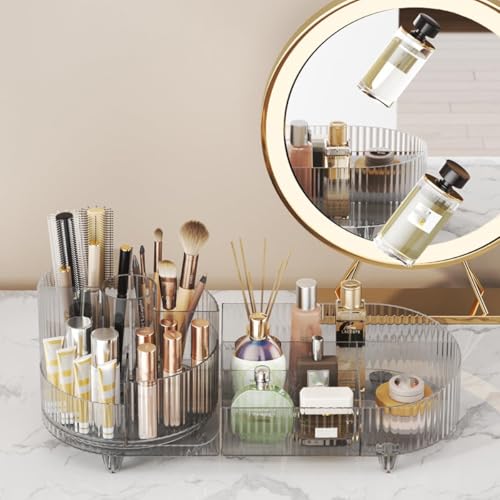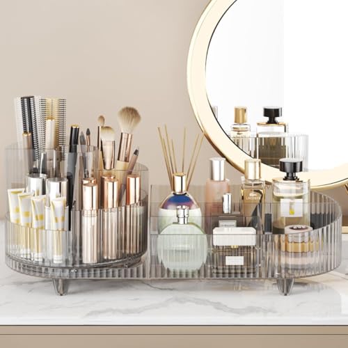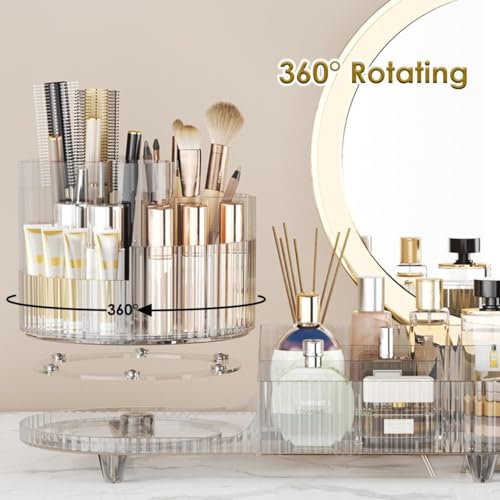 Artcochan - منظم مكياج دوار لسطح الطاولة، منظم مكياج لمستحضرات التجميل بسعة كبيرة مع حامل فرش المكياج، منظم مستحضرات التجميل يوضع على سطح الطاولة (شفاف)