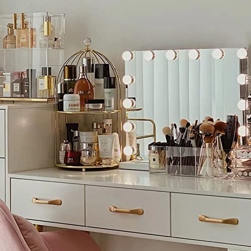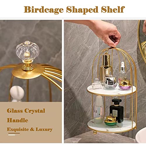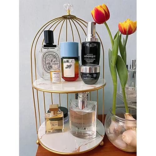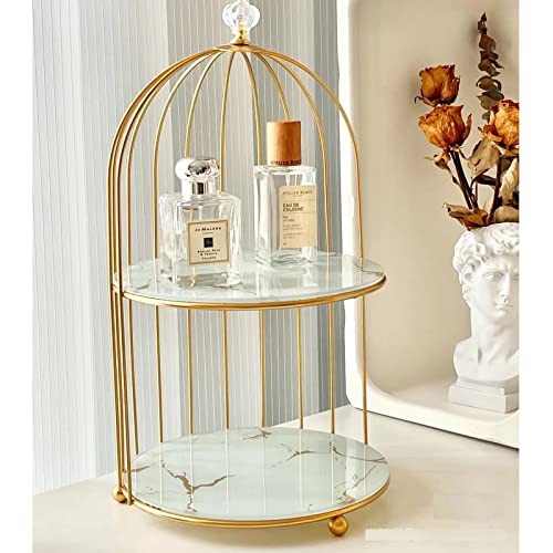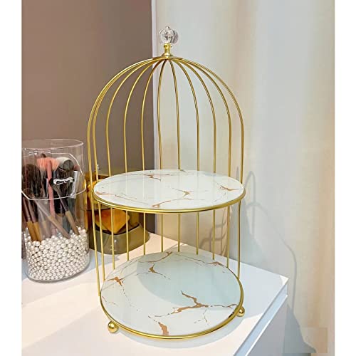 Generic - منظم مكياج معدني على شكل قفص طيور من 2 طبقة لتخزين مستحضرات التجميل والعطور، حامل كعك لعرض المجوهرات ومنتجات العناية بالبشرة