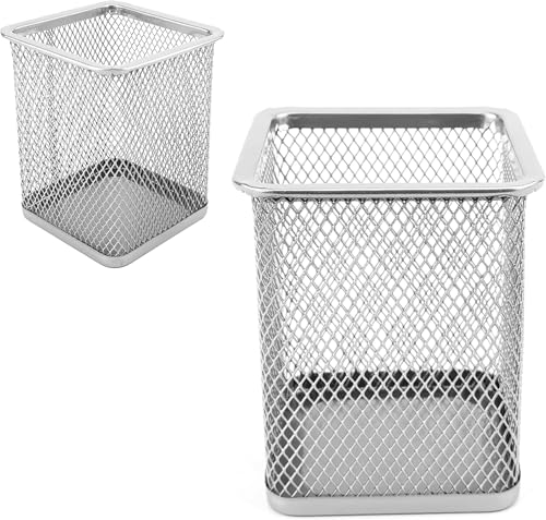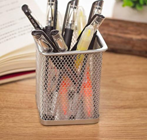Generic - حامل مكتب معدني لتنظيم المكياج - حامل مربع للأقلام والفرض والمستلزمات والأدوات المكتبية وتخزين مستحضرات التجميل للنساء والبنات، للطلاب والاستخدام المنزلي او المكتب (فضي)