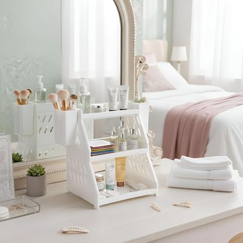 - يتميز صندوق تخزين مستحضرات التجميل المكتبي هذا بطبقتين واسعتين مصممتين لاستيعاب مجموعة متنوعة من عناصر المكياج مثل أحمر الشفاه وظلال العيون وغيرها من المتنوعات، مما يجعل التنظيم سهلاً وسهل الوصول إليه.
