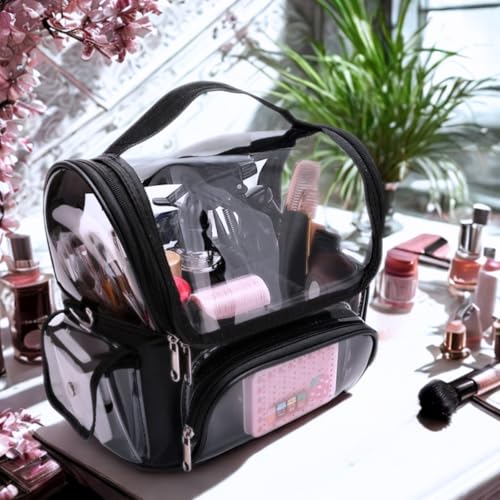 - منظم حقيبة المكياج الشفاف هذا هو الخيار الأمثل للحفاظ على مستحضرات التجميل ومنتجات التجميل والأدوات الشخصية مرتبة بعناية، سواء في المنزل أو أثناء الرحلة. يتضمن تصميمها الواسع والعملي فواصل داخلية قابلة للتعديل، مما يسمح بتكييفها مع حجم العناصر التي تريد تخزينها. بفضل هذه الميزة، يمكنك تنظيم المكياج والفرش وأدوات التجميل والكريمات والعطور والإكسسوارات بطريقة عملية ويمكن الوصول إليها في جميع الأوقات.