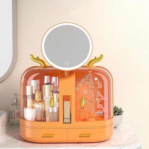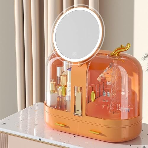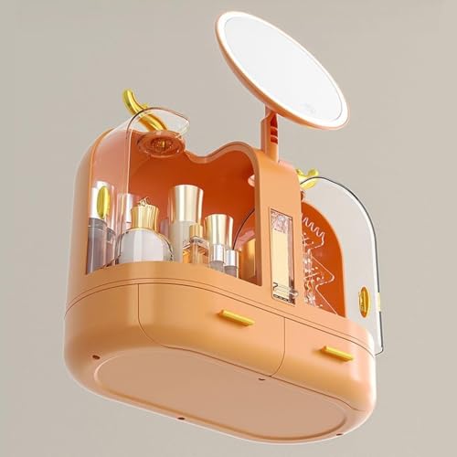 Generic - منظم مكياج و ادوات العنايه بالبشره بسيط ومبتكر مع مرآة مناسب لغرفة النوم والتسريحة والحمام مقاوم للغبار