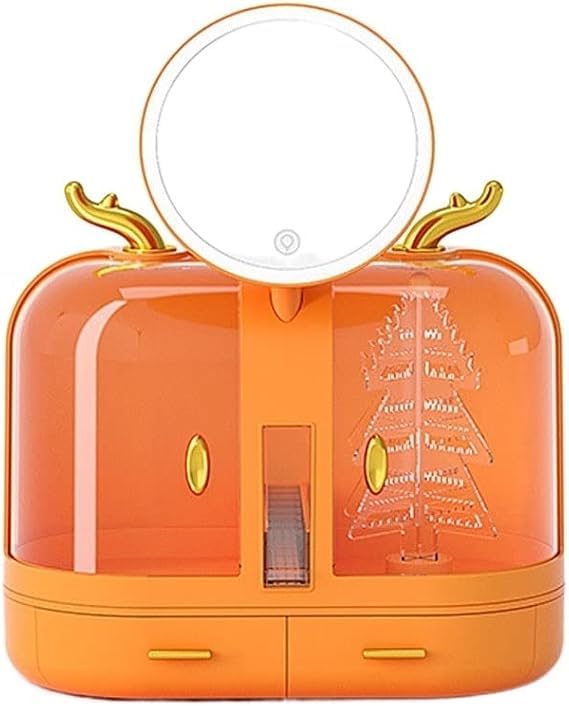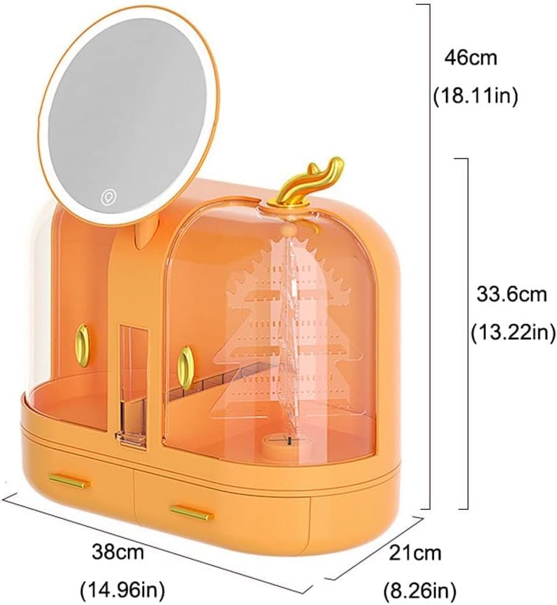 - صندوق تخزين مرآة مكياج مُضاء، بثلاث درجات حرارة قابلة للتعديل بحرية.
