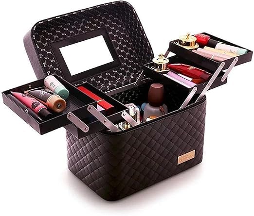 Generic - منظم مكياج مع مراة، صندوق تخزين مستحضرات التجميل المحمول للفرش واحمر الشفاه والمجوهرات والعناية بالبشرة والسفر خفيف الوزن ومقاوم للغبار