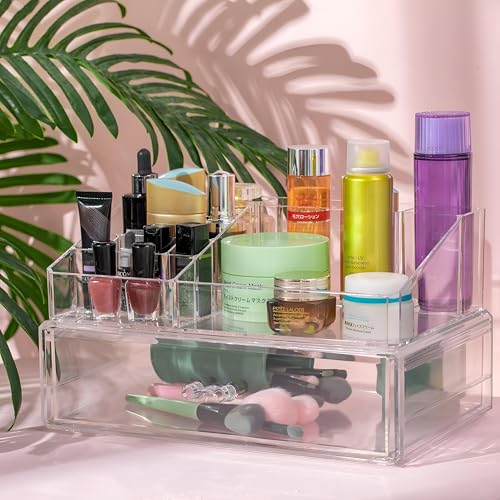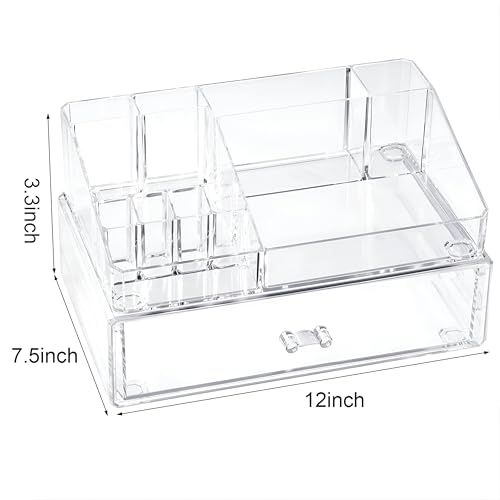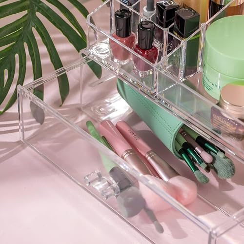 - صُنع منظم المكياج هذا من الأكريليك الشفاف عالي الجودة، وهو لا يخدم غرضًا عمليًا فحسب، بل يعزز أيضًا من الجاذبية الجمالية لحمامك أو منضدة الزينة. يسمح لك مظهره الواضح والراقي بتحديد مكان العناصر بسرعة دون الحاجة إلى البحث بين الفوضى، مما يضمن بقاء نظام جمالك مبسطًا.