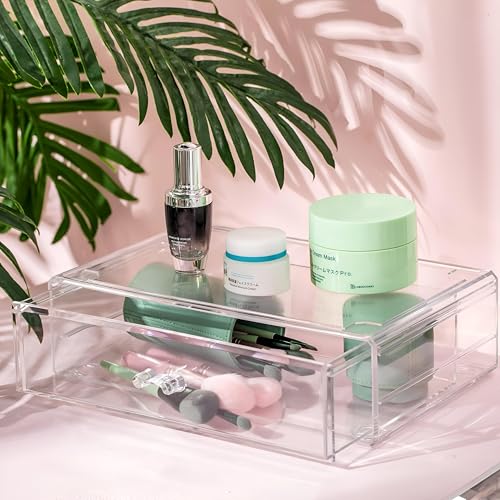 Generic - منظمات المكياج - اكتشف منظم المكياج الأكريليكي الشفاف مقاس 12 بوصة مع طبقتين مثالي لحمامك أو منضدة الزينة، للحفاظ على مكياجك أنيقًا ومرتبًا