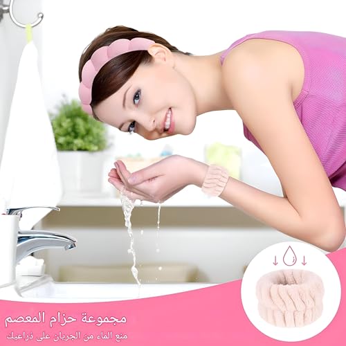 Generic - مجموعة متعددة الاستخدامات لإزالة المكياج مكونة من رباط رأس وأساور معصم تمنع السائل من التنقيط، مما يجعل روتين العناية بالبشرة أسهل بدون فوضى