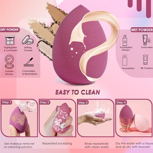 LIDENKORS - مجموعة اسفنجات المكياج، اسفنجة مزج المكياج، اسفنجات مكياج لكريم الاساس، اسفنجة تجميل للكريم السائل والبودرة، اسفنجات مكياج لكريم الاساس للوجه