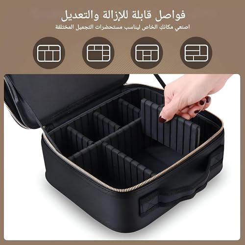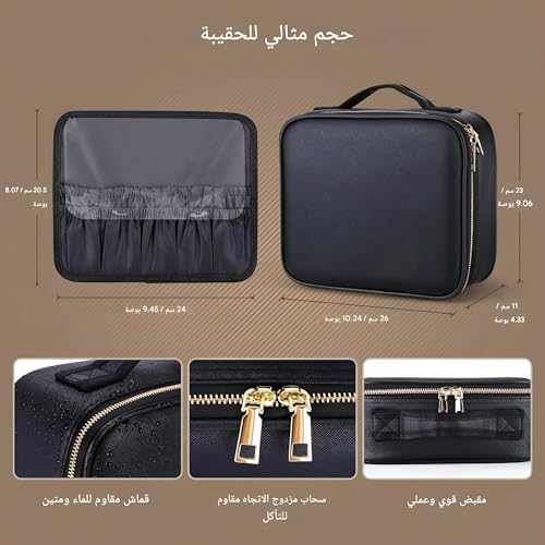 - يتضمن الجزء الداخلي القابل للتعديل بالكامل مساحات تخزين قابلة للتخصيص للكريمات والسوائل والمساحيق والفرش، مما يزيل الفوضى ويضمن تنظيمًا دقيقًا - معزز بسحاب مزدوج الاتجاه للوصول السهل سواء في المنزل أو السفر.
