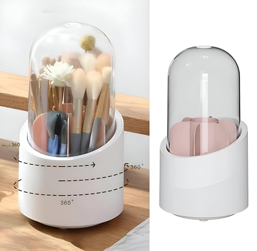 Generic - منظم تخزين المكياج - منظم مستحضرات تجميلية يدور بزاوية 360 درجة مع غطاء واقي واضح بشكل انيق