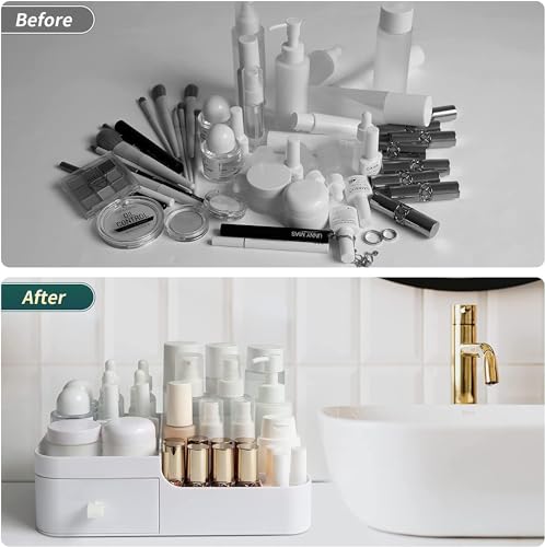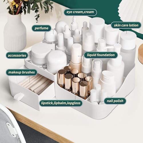 Generic - منظم تخزين مكياج مع درج لمستحضرات التجميل والعناية بالبشرة، منظم مستحضرات تجميل لأحمر الشفاه والفرش واكسسوارات التجميل، صندوق تخزين جمال لسطح المكتب لطاولة الزينة وطاولة الحمام