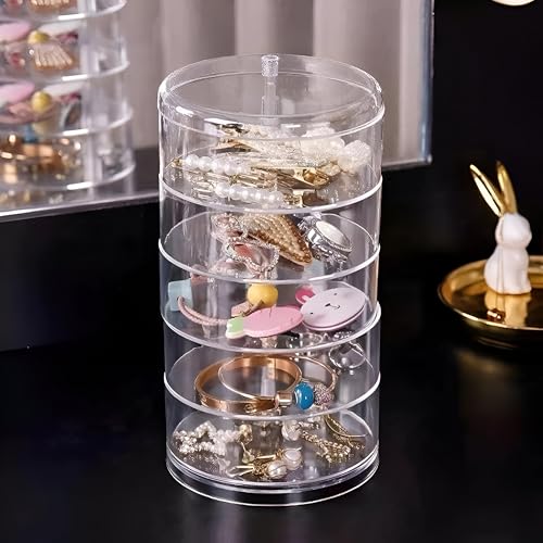 Generic - حامل ادوات المكياج - اكريليك دائري بخمسة مستويات لمستحضرات التجميل والاكسسوارات، تصميم شفاف انيق