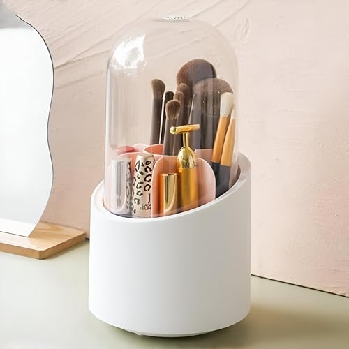 Generic - حامل ادوات المكياج - كوب دوار ابيض متين للفرش، مقاوم للغبار والماء، يناسب سطح المكتب والحمام لسهولة الوصول