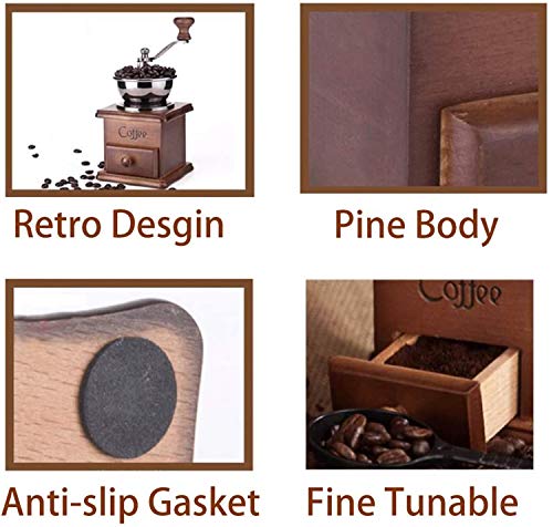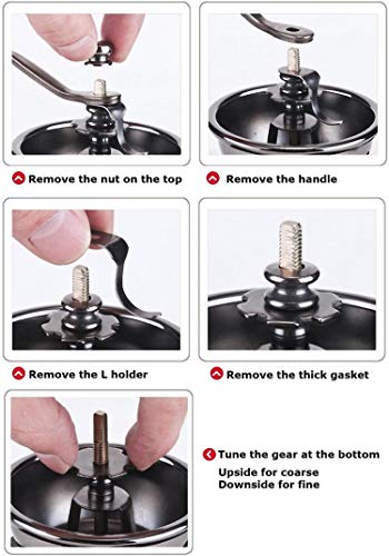 - ✅سهل الاستخدام: ببساطة ضع حبوب القهوة في وعاء مطحنة القهوة وأدر المقبض عدة مرات. تتساقط القهوة المطحونة في الدرج، حتى تنتهي من طحن القهوة.