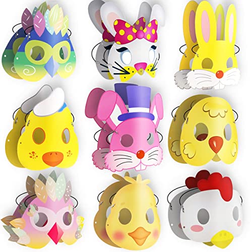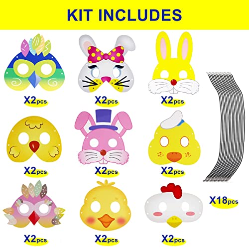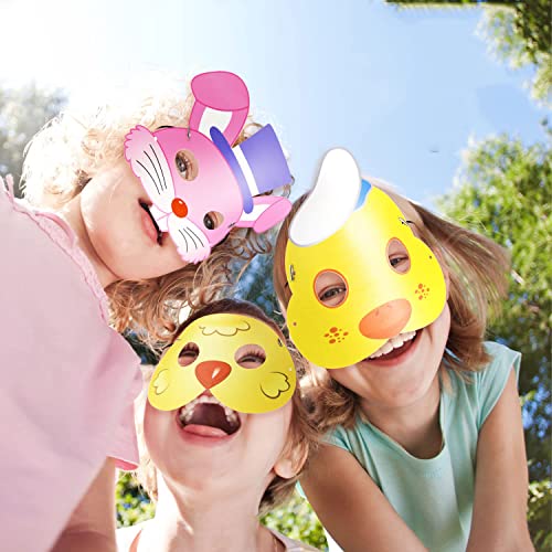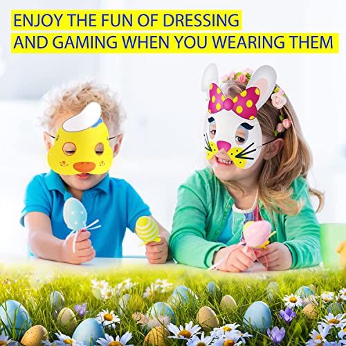 MAKINGTEC - اقنعة حفلات بطابع الاطفال، 18 قطعة من اقنعة العاب الاطفال بنمط الحيوانات، اغطية وجه للاعياد للاولاد والبنات (ارنب وكتكوت)