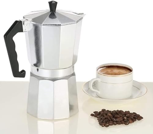 H-Home - 3 أكواب إبريق صناع قهوة الموكا مصنوعة من الألومنيوم وجهاز تصفية وصنع الاسبريسو على الموقد فضي maky store