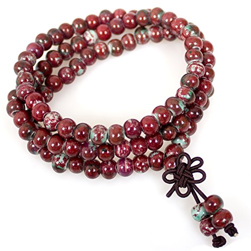 PWMEN - خرز مالا 108 بورسلين لامع لصنع اساور ومجوهرات وسلاسل يودية للرجال والنساء - خيط مطاطي