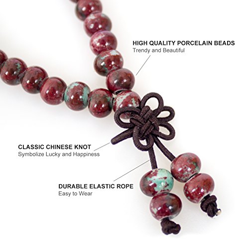 - المواد والحرفية: تأتي المواد الخام من الأرض المقدسة البوذية، وكهوف موجاو في دونهوانغ. يتم تشكيلها من خلال آلاف السنين من العملية الطبيعية وهي مقدسة ولها طاقة. خرز البورسلين هذا مصنوع يدويًا من "عاصمة البورسلين" الشهيرة والطويلة التاريخ، جينغدتشن في الفرن ومصبوغة، طلاء فامبي نتيجة إطلاق النار في kiln,kiln,خرز البورسلين من الفرن مختلف في اللون والشكل