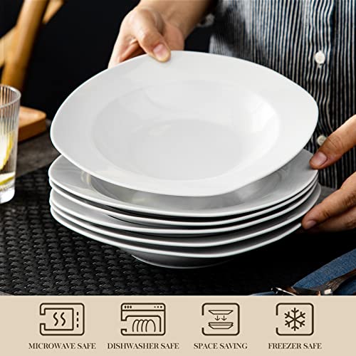 MALACASA - مالاكاسا اطباق حساء سعة 6 اونصة اوعية بورسلين 8.5 انش للسلطة والمعكرونة والسلطة بلون رمادي وابيض مجموعة تقديم عميقة للحلوى والمزيد من قطع سلسلة اليسا