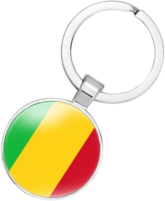 Generic - سلسلة مفاتيح بتصميم علم مالي بتصميم العلم الوطني ثلاثي الالوان، حلقة مفاتيح معدنية فضية تذكارية لمشجعي فريق كرة القدم