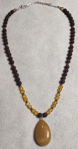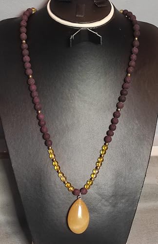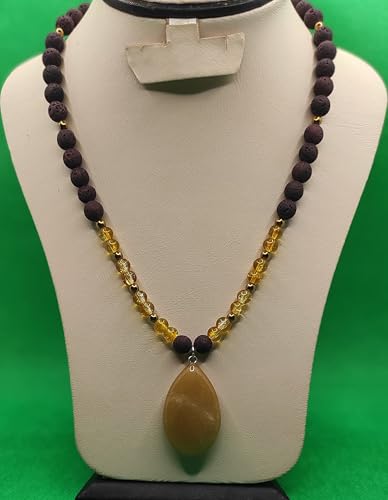 Generic - عقد من حجر الهيماتايت والحجر البركاني الطبيعي - متعددة الالوان، قلادة من العقيق الطبيعي - اكسسوارات مليكة، للنساء