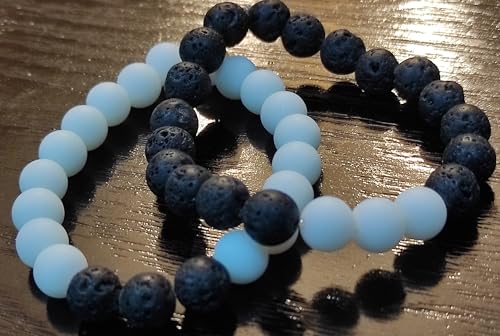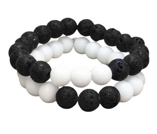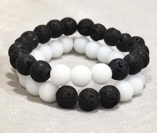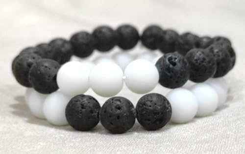Malika Accessories - اساور توينز للرجال من حجر الاونيكس واللافا البركاني الطبيعي- ابيض- اسود