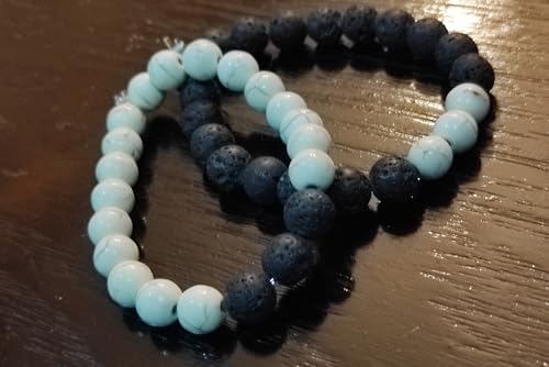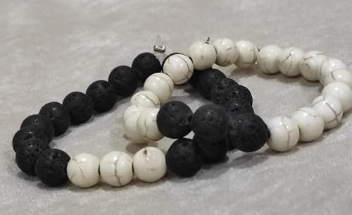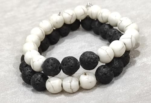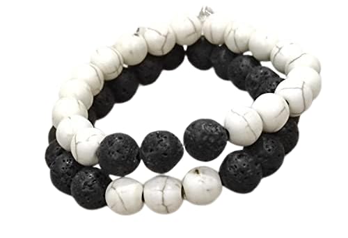 Malika Accessories - اساور توينز للرجال من حجر الفيروز واللافا البركاني الطبيعي- اوف وايت - اسود