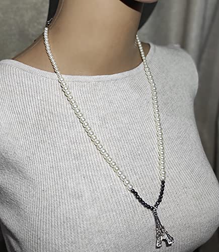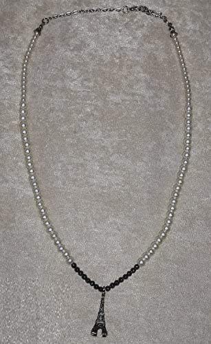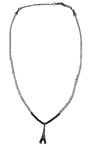 Malika Accessories - عقد من مليكة للاكسسوارات من حجر الهيماتيت و المايوري+ دلاية برج ايفل-ابيض في رمادي، للنساء