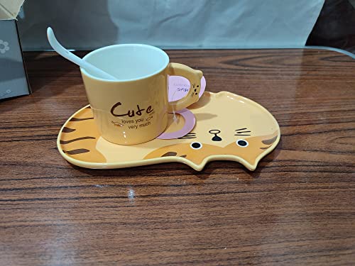 Generic - مج شاي بورسلين بالطبق و المعلقه لوضع الجاتوه من مول الرحمه، بني